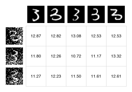 We first compute the distance between the model samples and the positive samples (a batch of training examples) and negative examples (the model samples themselves). The paper uses the L2 norm, which is available in scipy as cdist: